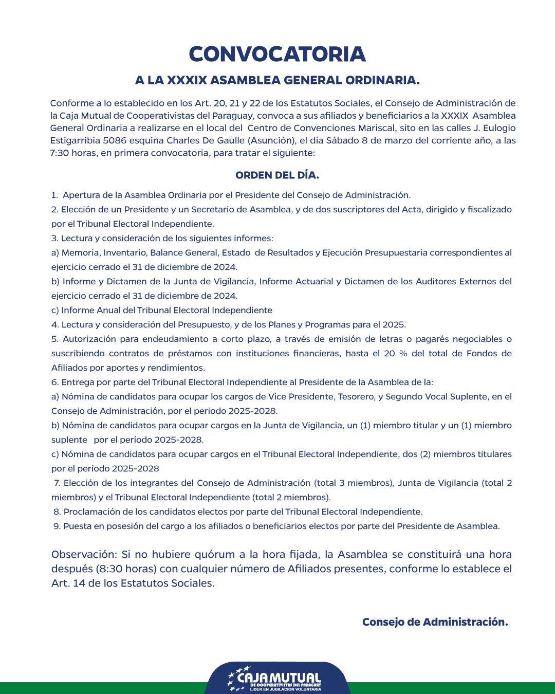 En este espacio podrá encontrar todo lo referente a la Asamblea General Ordinaria de La Caja Mutual