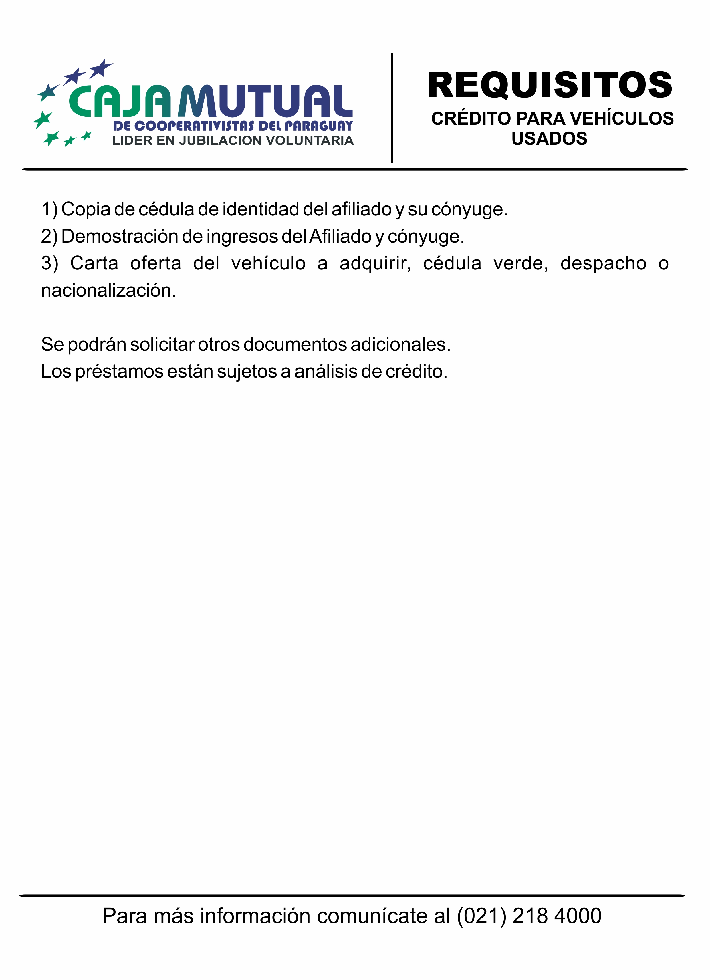 Crédito destinado para la compra de vehículos usados, sin garantía prendaria y con financiación hasta el 100% del valor.